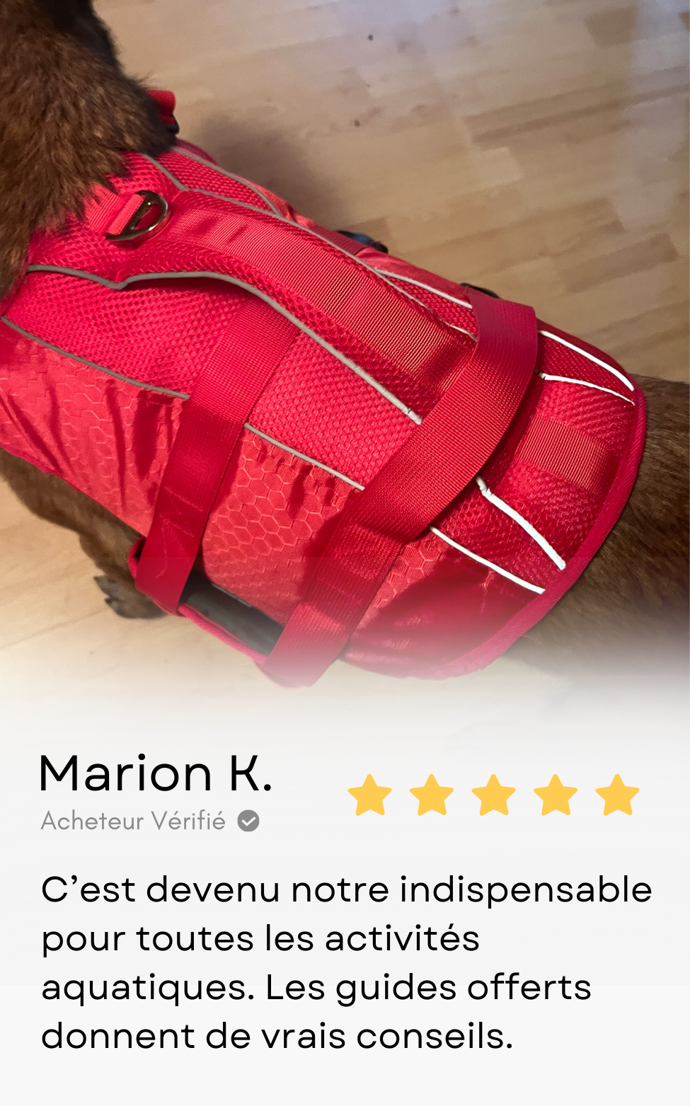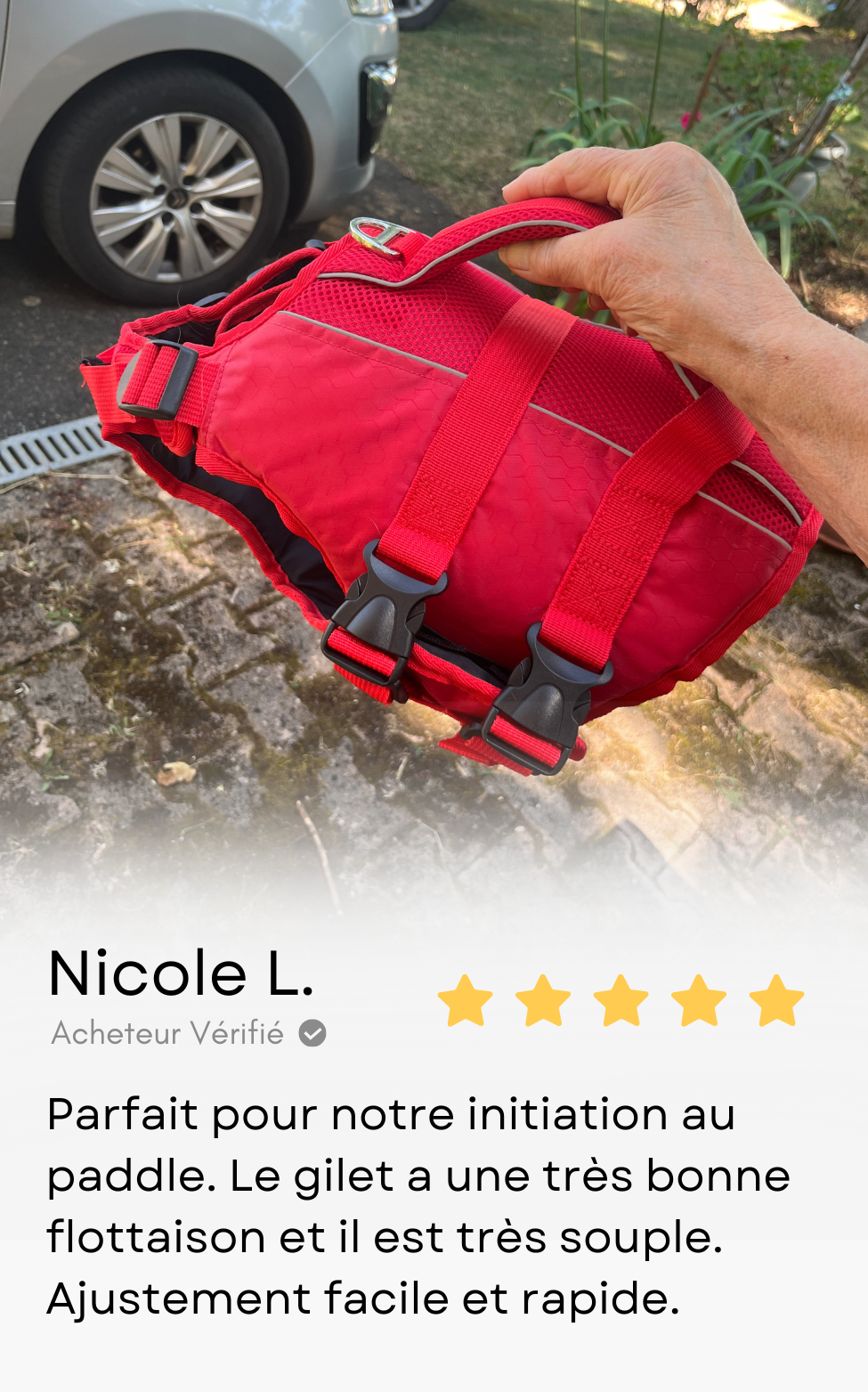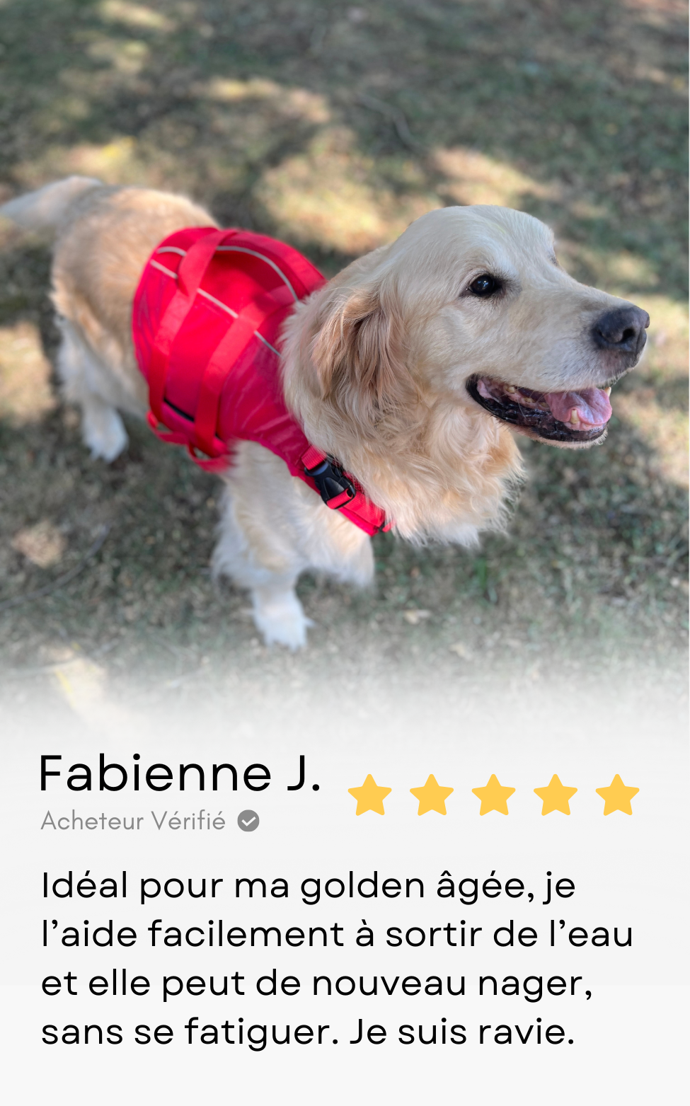 Le gilet Nautik est parfaitement adapté pour les chiens âgés, blessés ou en rééducation. Il réduit l’effort de nage, stabilise la posture et facilite les sorties aquatiques.