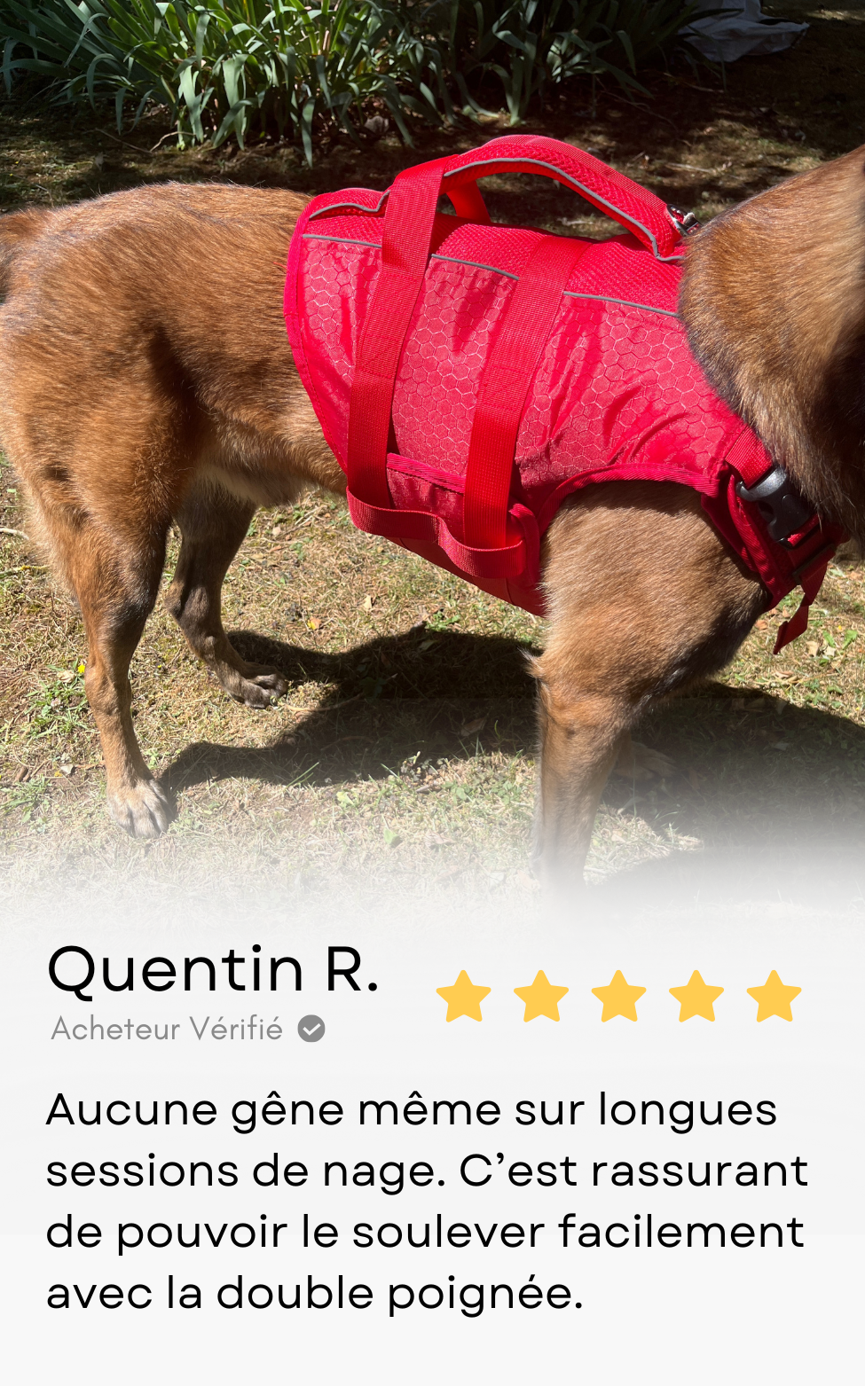 Léger, souple et pensé pour l'eau, il accompagne les chiens actifs comme les plus calmes en soutenant la nage naturelle.