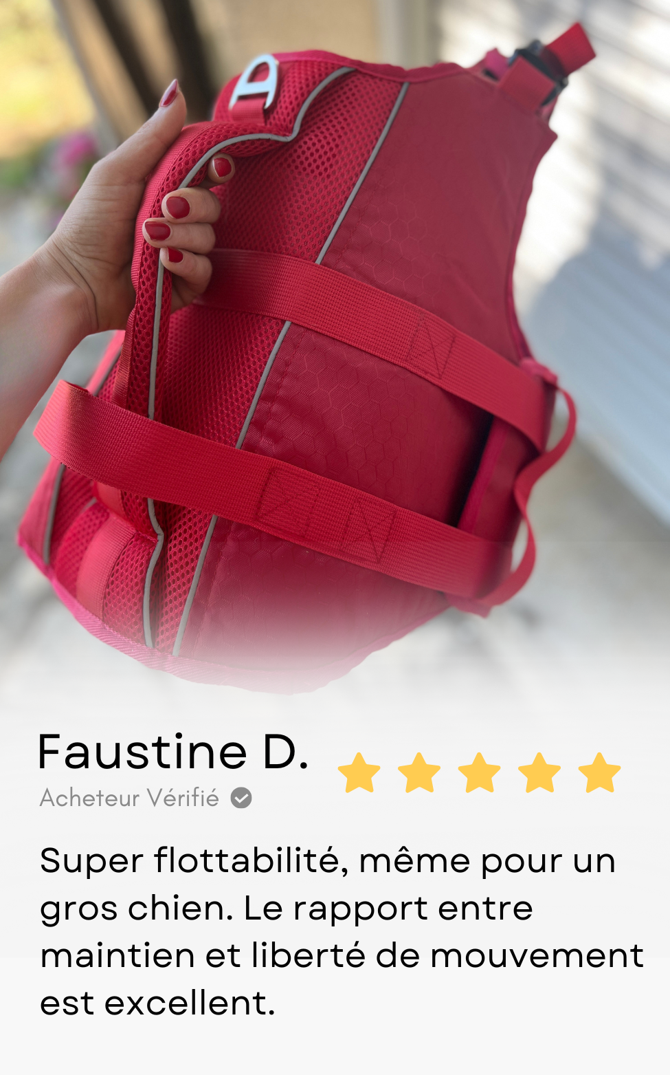 Le gilet est léger, souple, sans zones rigides. Aucune sensation d’écrasement ou de gêne. Même les chiens sensibles s’y adaptent très vite.