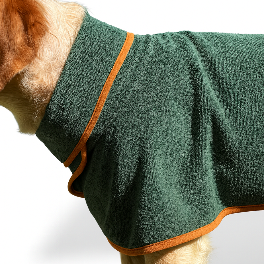 Conçu en microfibre haute densité, le Drycoat absorbe l’eau en quelques secondes et laisse le pelage sec, léger et sans odeur.