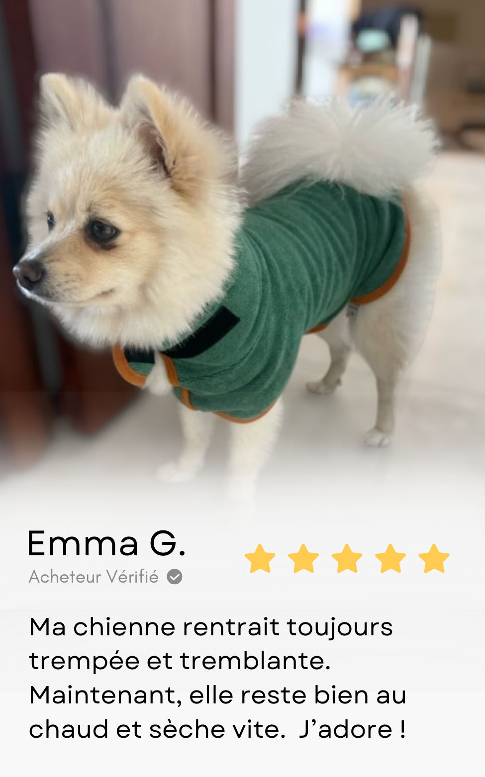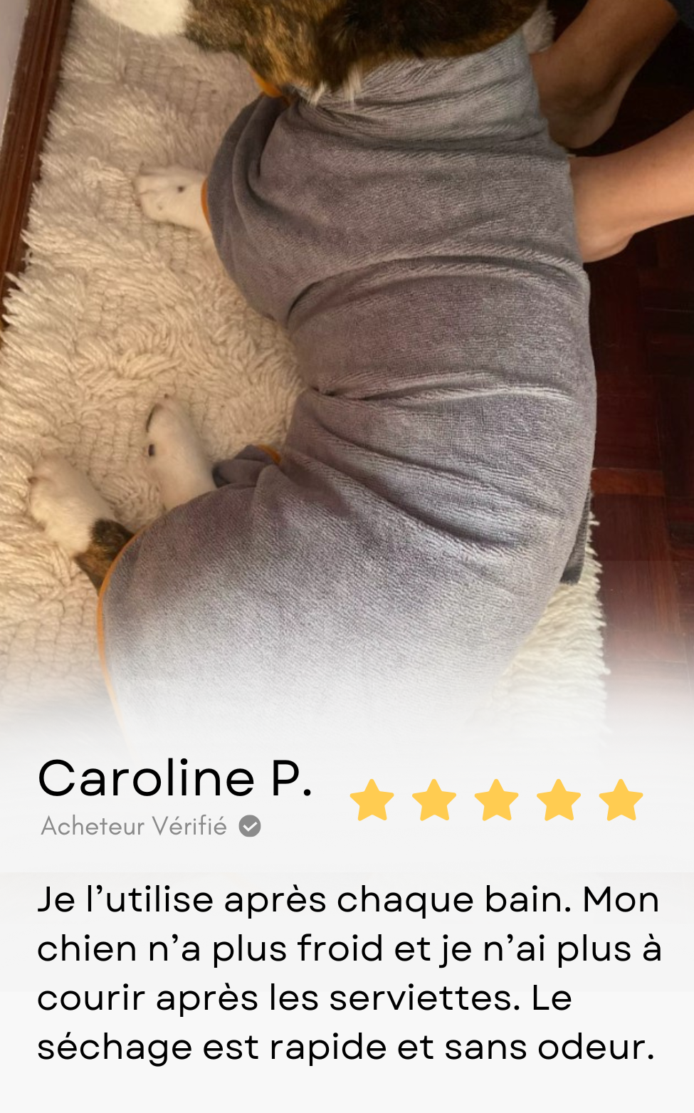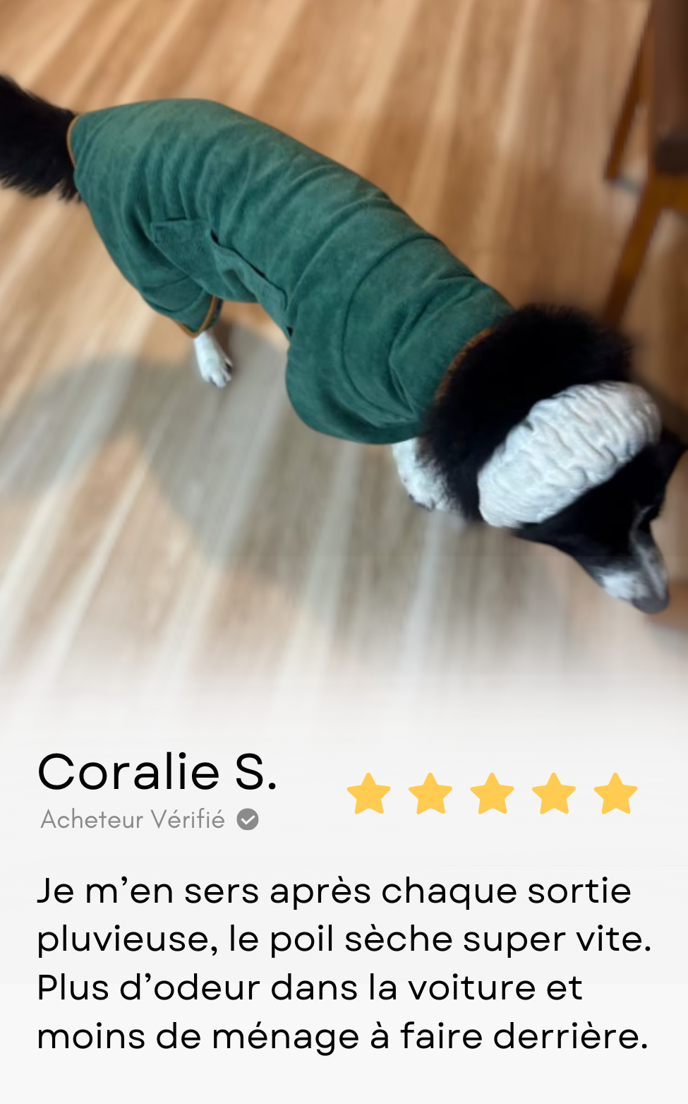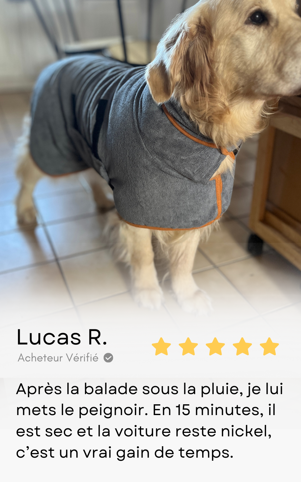 Le chien sèche seul, la maison reste propre et le retour devient un moment de bien-être partagé.