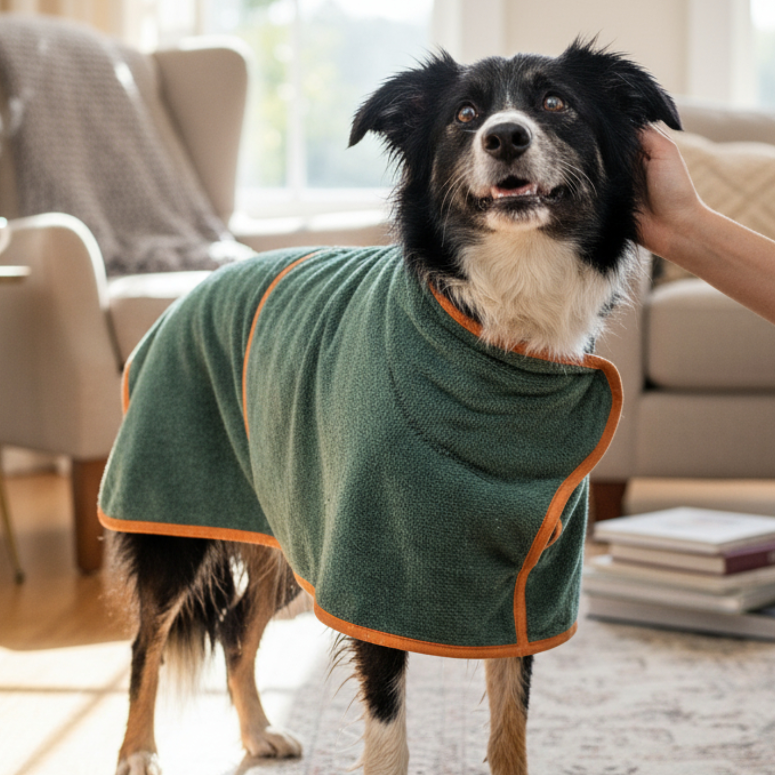 Le Drycoat absorbe l’eau du pelage en un instant. Fini le chien dégoulinant et les serviettes inefficaces. Il sèche calmement, sans stress ni agitation.