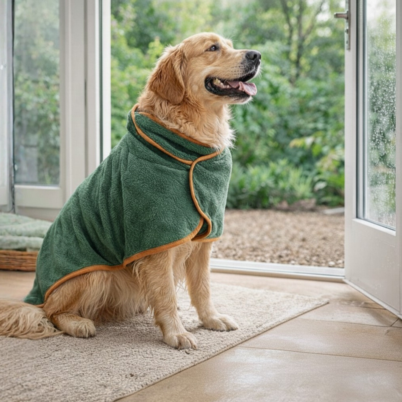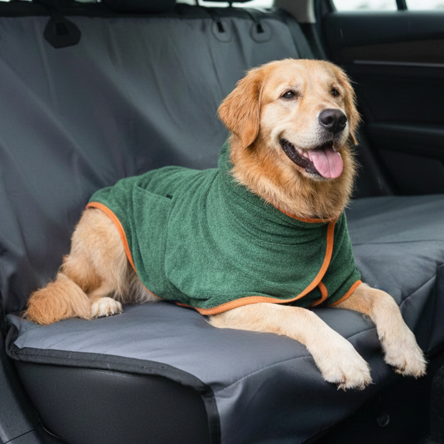 Après la sortie, votre chien sèche pendant qu’il se repose. Vous rentrez, le canapé et le carrelage restent secs.
