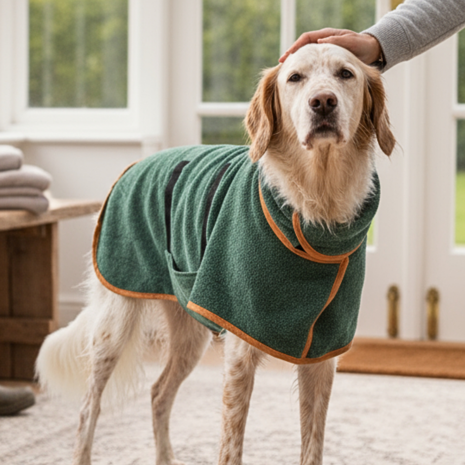 Oui. C’est même l’un de ses meilleurs usages. Il accélère le séchage, évite les frissons et garde le chien au chaud après le bain ou le toilettage.